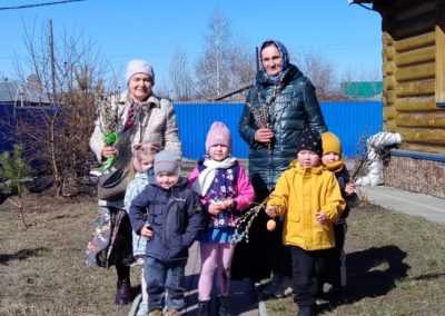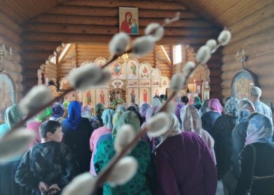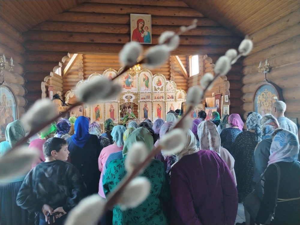 Молящиеся принесли букетики верб, а тем, у кого не было –раздали в храме. Дети и взрослые пошли на исповедь и Святое Причастие приняли около 50 человек.