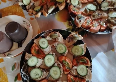 Боголюбивые прихожанки приготовили для всех присутствующих небольшое угощение с рыбкой и по окончании богослужения каждый отведал освященные продукты.