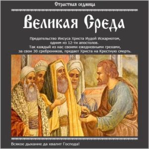 Великая Среда — день предания на Страдания и Смерть Господа и Спаса нашего Иисуса Христа.