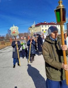 По завершении Литургии прошел крестный ход вокруг храма.