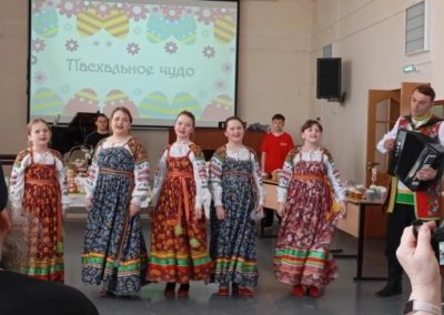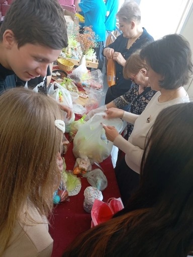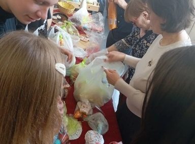 По окончании выставки пасхальной снеди все принесенные вкусности были упакованы в индивидуальные пакеты и ребята-волонтеры вручили их дедушкам и бабушкам, по тем или иным причинам оставшимся в одиночестве.