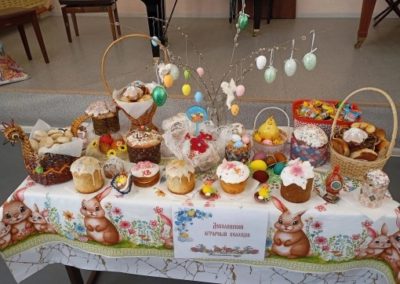 Хозяюшки покрасили яйца, напекли куличей, булочек, караваев, пирогов, накрыли столы и красиво оформили свои кулинарные шедевры. Разнообразие и количество пасхальных блюд впечатляло и радовало глаз.
