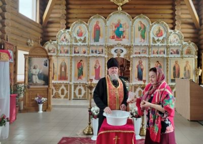 В Светлую пятницу в честь празднование иконе Божией Матери «Живоносный источник» было совершено малое освящение воды.