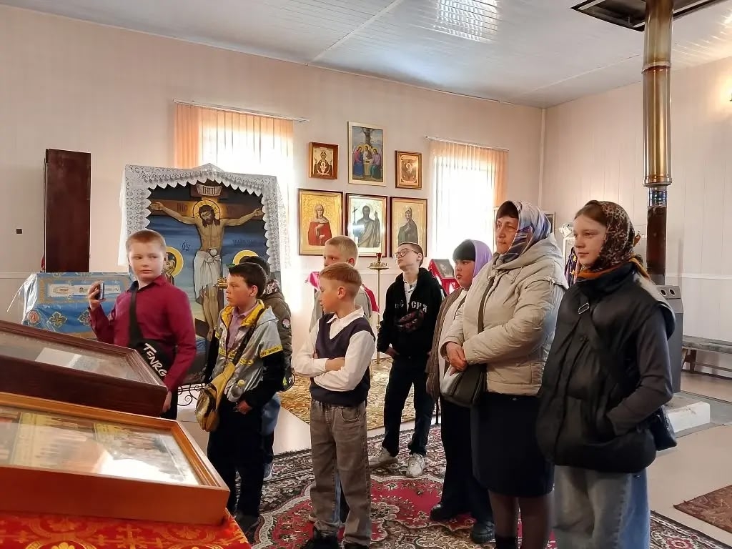 23 апреля в храме в честь Успения Пресвятой Богородицы села Половинного прошла встреча протоиерея Евгения Зверева, настоятеля храма во имя прп. Сергия Радонежского р.п. Краснозерское,  с учащимися средней образовательной школы села Октябрьского Краснозерского района.