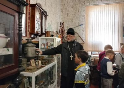 Батюшка  рассказал детям об истории храма, о православной вере, традициях и Пасхе. С интересом провел экскурсию по музею и подарил каждому по иконе. Научил правильно ставить свечи и, позвонив в колокола, благословил всех на учебу.