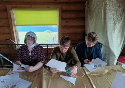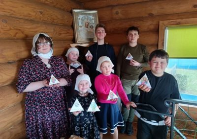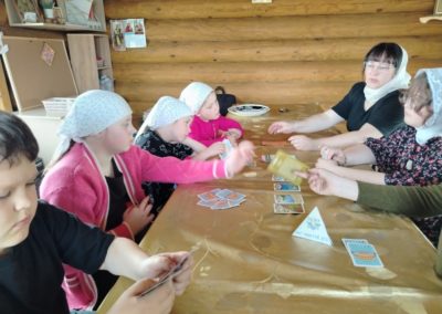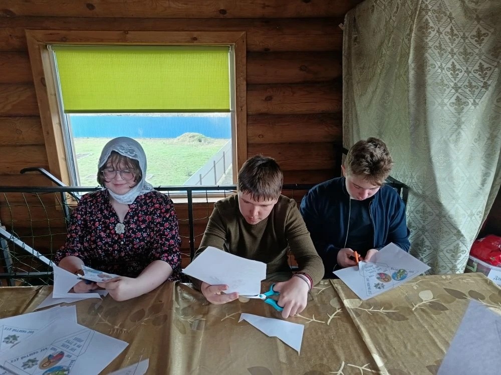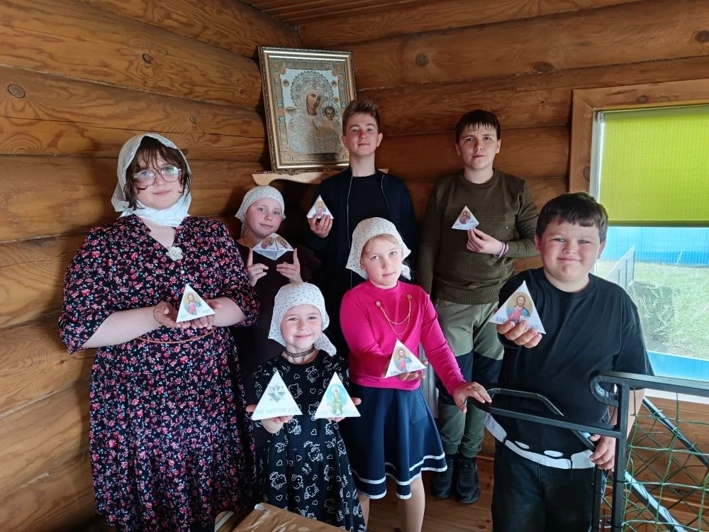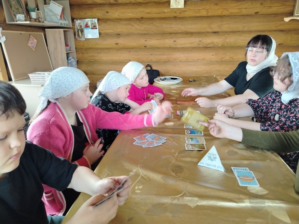 Ребята на занятии воскресной школы  просмотрели детский фильм о женах-мироносицах, изучили иконографию праздника, а затем изготовили небольшую бумажную поделку.