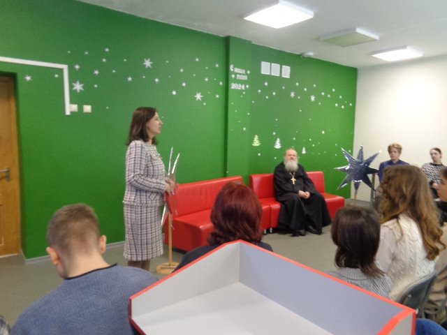 В самом начале мероприятия перед ребятишками выступила директор школы Севрюк Нелля Анатольевна, которая вкратце обозначила тему разговора на этой встрече, а затем слово предоставили иерею Сергию.