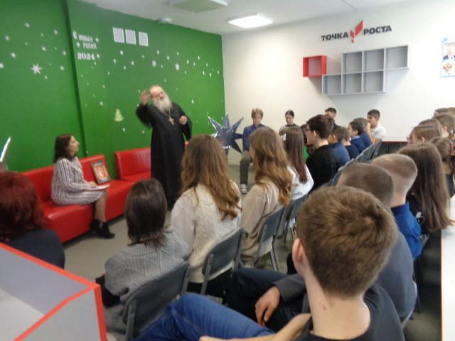 В этом мероприятии участвовало более 30 учащихся школы, причем порадовало то обстоятельство, что ученики пришли встретиться с батюшкой на добровольной основе, а не по принуждению.