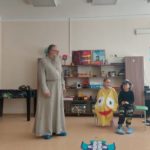 И в этот раз они с нетерпением и радостью встретили архипастыря у входных дверей и, обменявшись Пасхальным приветствием, провели его в игровую группу, где состоялся пасхальный концерт.