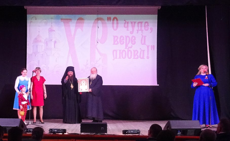 Епископ Филипп со сцены Дома культуры тепло поздравил и зрителей, и участников концерта со святым праздником Воскресения Христова и сказал, что “Господь отдал Свою жизнь для победы над вечной смертью каждого из нас и Он же даровал нам победу в Великой Отечественной войне – самой жестокой войне в истории человечества. “И по смыслу и по дате эта Великая победа в этой самой страшной войне неотделима от праздника Христова Воскресения”, ибо неслучайно война завершилась в дни празднования Пасхи ― победы Христа Спасителя над смертью. И как в 1945 году, так и сегодня, в День Победы звучит жизнеутверждающее пасхальное приветствие: “Христос воскресе!”