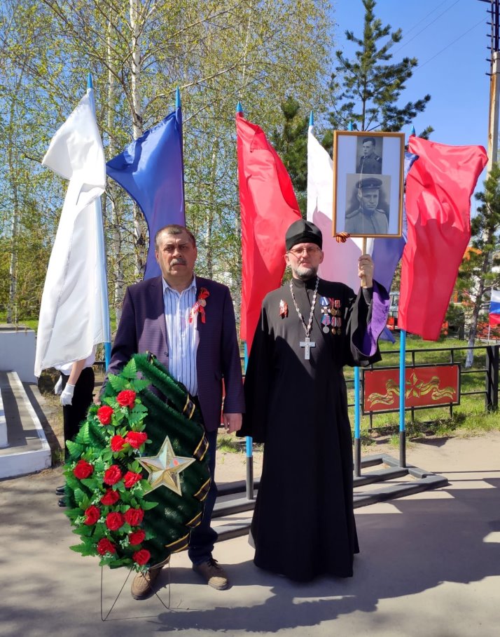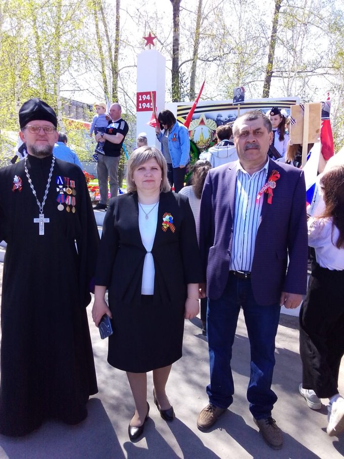 9 Мая протоиерей Евгений Зверев принял участие в 3-х митингах в честь Дня Победы: в с Половинном, с Голубинском, с. Элеватор Краснозерского района, прошел бессмертным полком и поздравил всех с праздником Великой Победы.