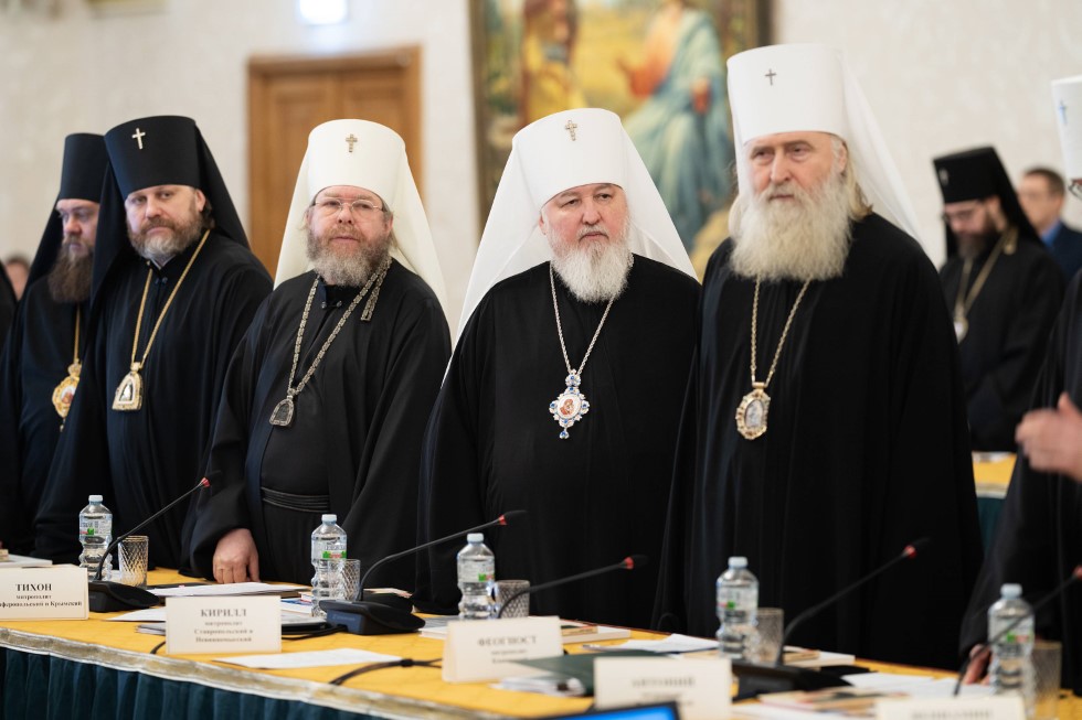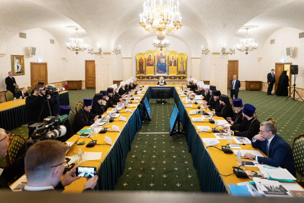В заседании принимают участие постоянные и временные члены Священного Синода, члены Высшего Церковного Совета, а также ряд приглашенных сотрудников Управления делами Московской Патриархии и синодальных учреждений.
