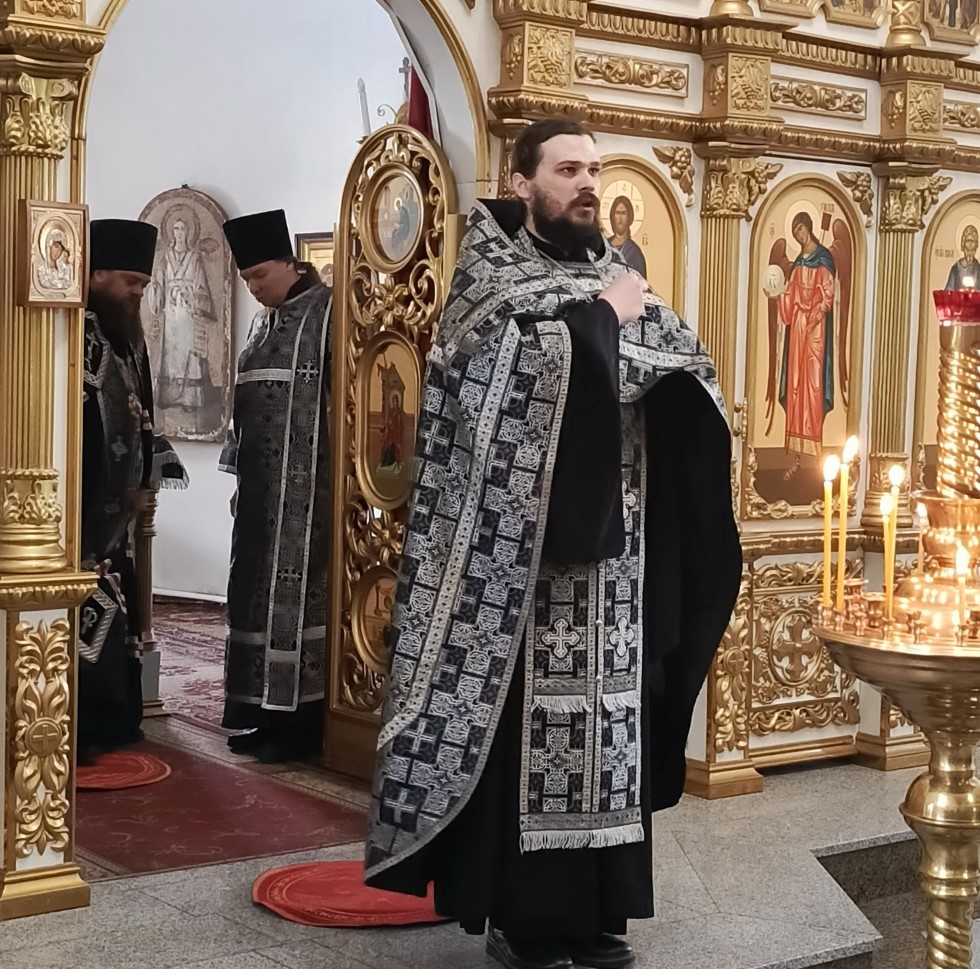 Первая часть богослужения совершалась духовенством в светлых облачениях. После пения великого прокимна «Не отврати лица Твоего….» и закрытия Царских врат епископ Филипп и священнослужители переоблачились в великопостные черные ризы. После отпуста вечерни владыка прочитал молитвы на начало Святой Четыредесятницы и обратился к молящимся с архипастырским словом, в котором призвал христиан к покаянию и прощению друг другу прегрешений и обид. И пожелал, чтобы Святая Четыредесятница была полезной для души, чтобы «мы закрыли глаза на немощи другого» и видели только свое недостоинство и Божественную любовь.