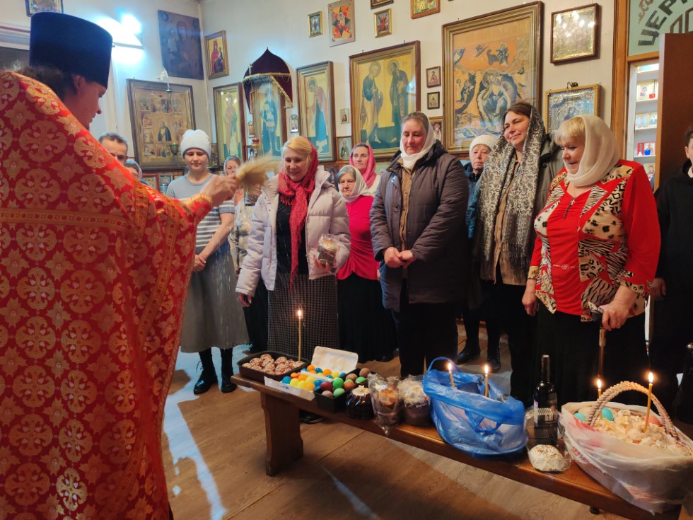 В завершение Литургии иерей Константин Карамышев, настоятель храма, поздравил всех с Великим торжеством, Пасхой Христовой. Затем состоялась праздничная трапеза.