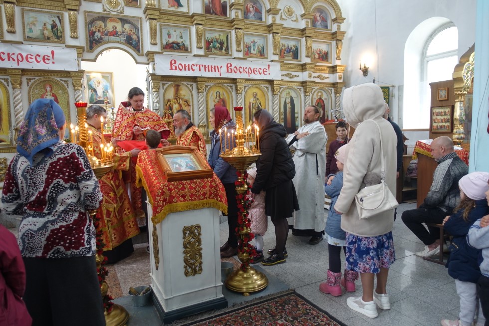 По сугубой ектении епископ Филипп вознес молитву о Святой Руси. Песнопения воскресного богослужения исполнил архиерейский хор под управлением регента Анны Апостол.