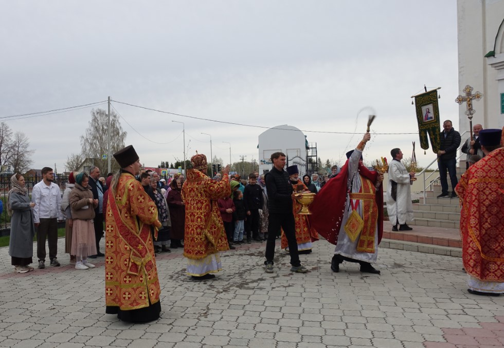 По окончании Божественной литургии под колокольный звон состоялся пасхальный крестный ход вокруг собора. В архипастырском слове по его завершении Владыка поздравил всех с воскресным днем — женскую половину собора с праздником св. жен-мироносиц, подчеркнув высоту и важность женского служения в Церкви.