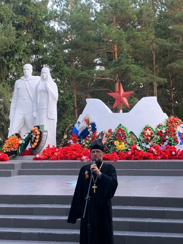 22 июня в р.п. Краснозерское прошел митинг, посвященный началу Великой Отечественной войны. У монумента Славы воинам-освободителям от вселенского демонического зла глава района, депутаты и настоятель храма во имя прп. Сергия Радонежского протоиерей Евгений Зверев призвали в своих выступлениях к духовной мобилизации к единству в вере и традициях.