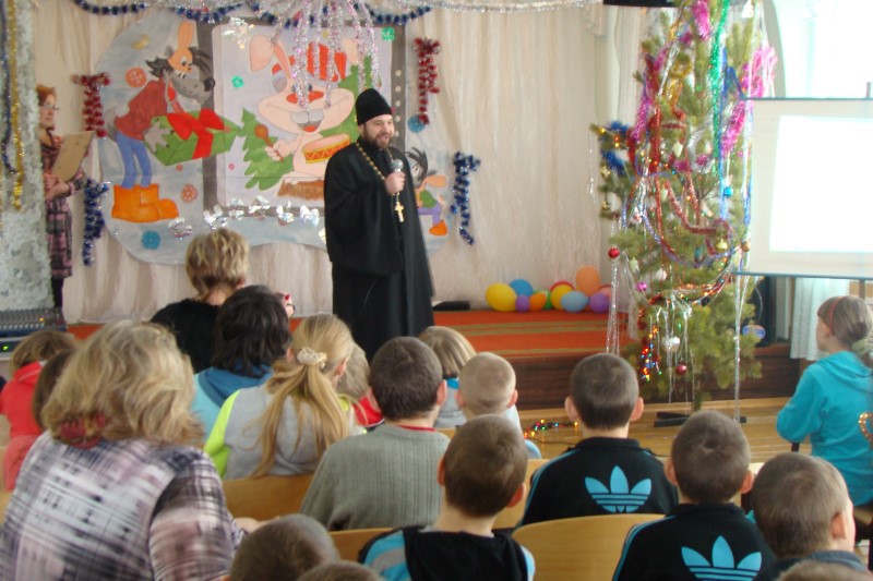 В школе-интернате в 13 часов был проведён Рождественский концерт. Иеромонах Мелхиседек поздравил всех присутствующих с праздником и рассказал о великом празднике Рождества Христова.