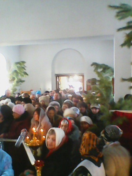 В Кочковском храме на Крещение Господне храм наполнен народом всегда. Литургия началась в 9 часов. Во время и после водоосвящения народу заметно прибавилось, так что очередь выходила на улицу.