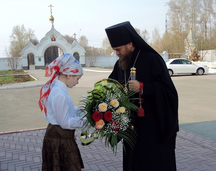 4 мая/воскресение. В Неделю 3-ю по Пасхе, святых жен-мироносиц, Его Преосвященство епископ Филипп возглавил Божественную литургию в Иоанно-Предтеченском мужском монастыре г. Новосибирска, на которую приехали дети из детских домов: №6, 7, 9, 12, 13 и многие другие.