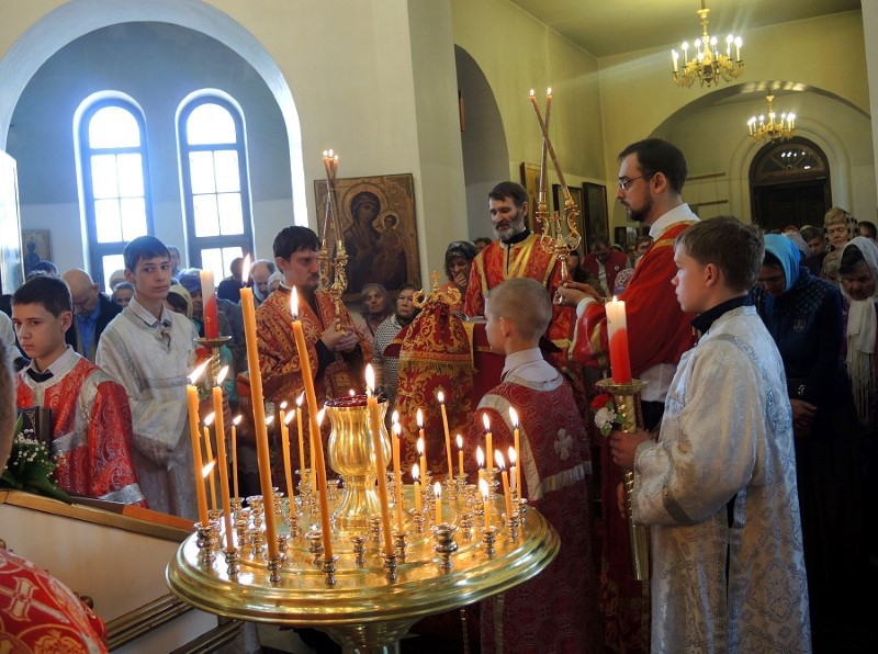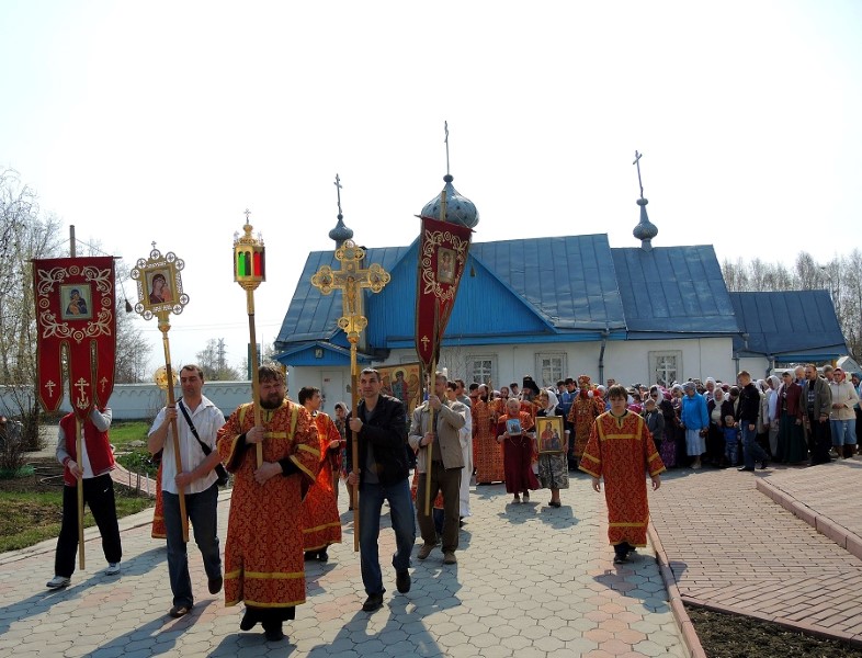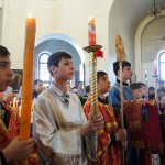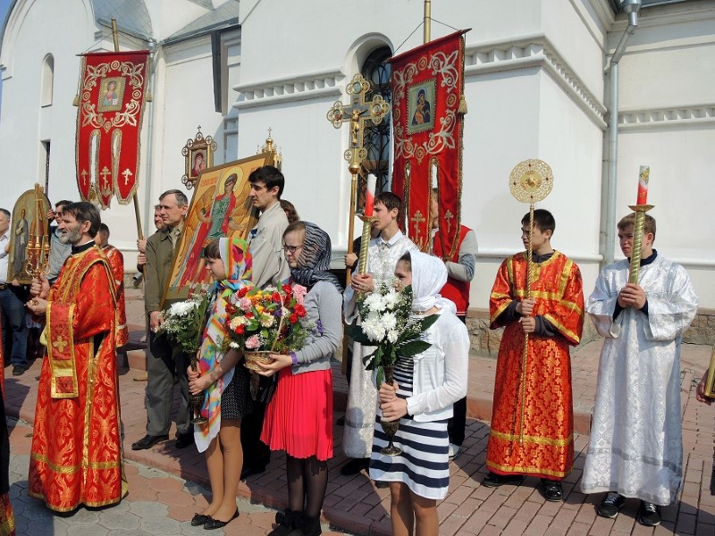 По окончании Божественной литургии был совершен крестный ход вокруг храма, во время которого дети несли хоругви, иконы и кресты.