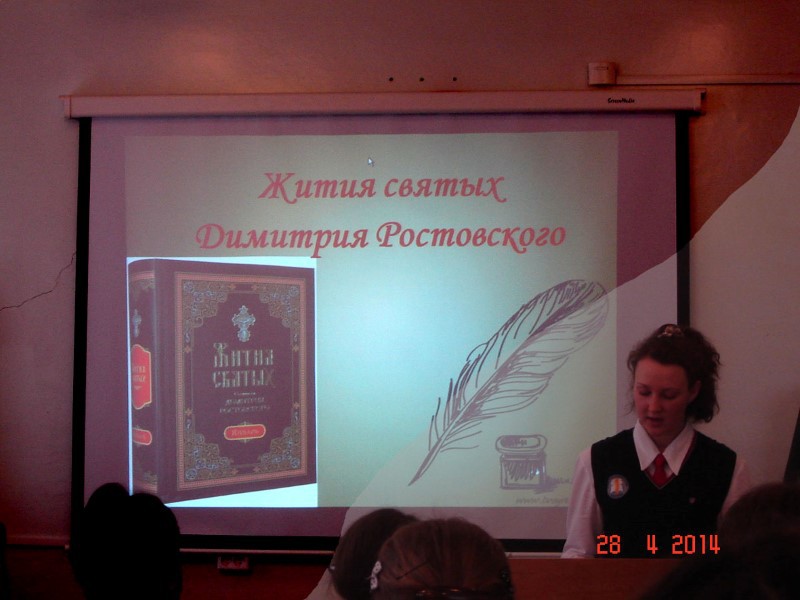 В ходе конференции были зачитаны доклады, посвященные произведениям древнерусской литературы. Это и Жития святых в изложении свт. Димитрия Ростовского и Великие Четьи Минеи. Книга «Домострой» и «Летописная повесть о Куликовской битве». Жития Феодосия Печерского и Ефросинии Полоцкой. Степенная книга царского родословия.