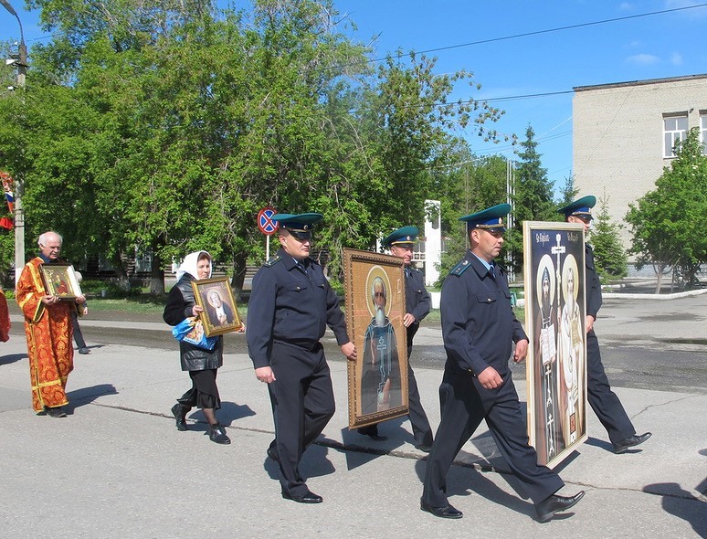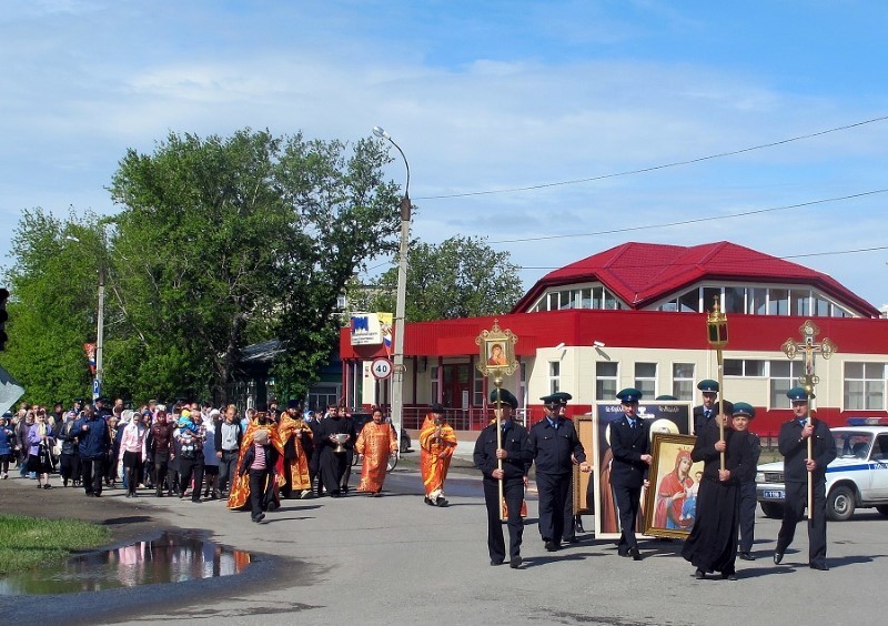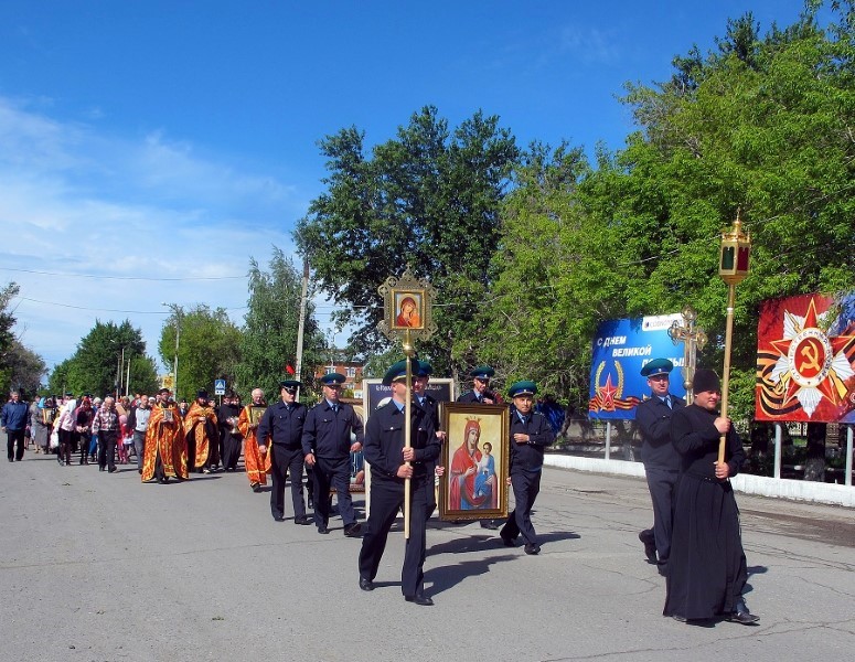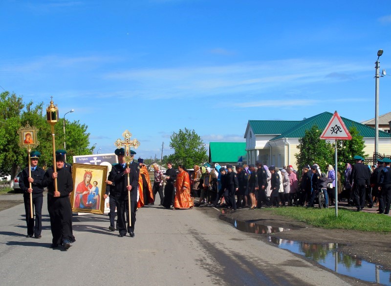 В крестном ходе, посвященном Дням славянской письменности и культуры, а также в преддверии праздника Дня пограничных войск приняли участие офицеры погранзаставы и личный состав отдела пограничных войск г. Карасука, множество прихожан и школьников.