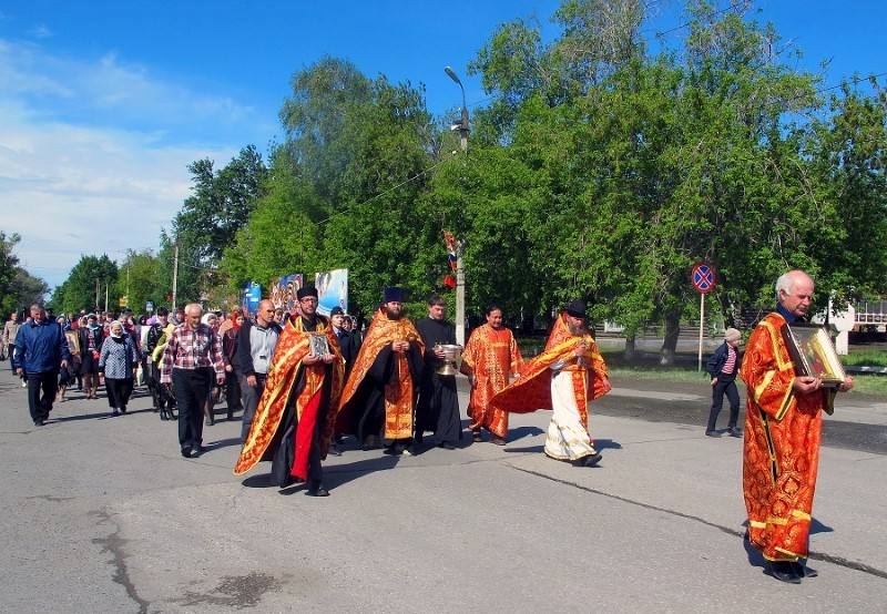 25 мая/воскресение. В 9.00 в Кафедральном соборе св. ап. Андрея Первозванного г. Карасука состоялась Божественная литургия. По окончании Литургии секретарь Карасукской епархии иерей Игорь Непша, духовенство и прихожане собора совершили крестный ход по г. Карасуку от Кафедрального собора до храма во имя святого равноапостольного великого князя Владимира.