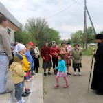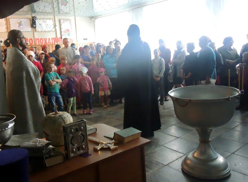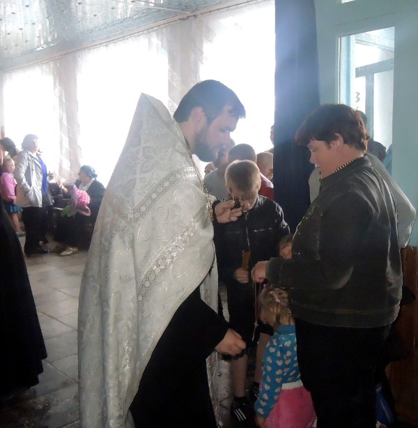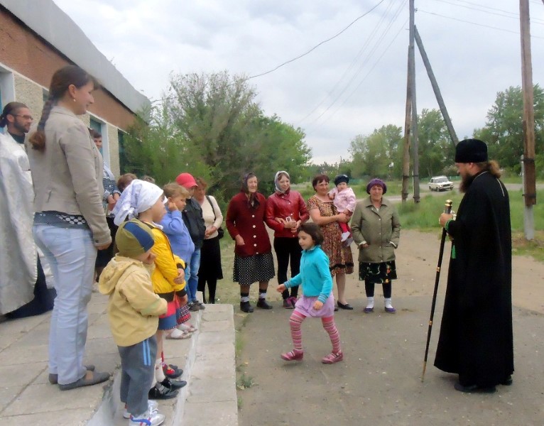 В деревне Поповке проживают около тысячи человек, и епископ Филипп был очень удивлен, когда, подъехав к местному клубу, увидел, что у входа в клуб его встречали более ста человек вместе с детьми.