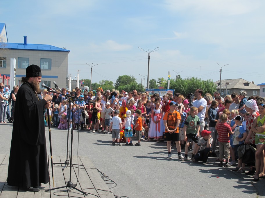 В 14:00 ч. Владыка принял участие в праздничном мероприятии на центральной площади города, посвящённое Дню защиты детей. Архиерей обратился к гостям праздника с приветственным словом и поздравил с открытием детского парка.