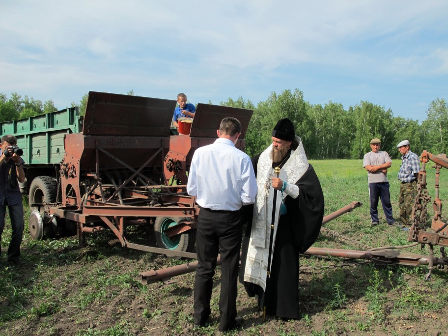По возвращении из Купинского района Преосвященный Владыка посетил с. Благодатное, где состоялось освящение сельскохозяйственной техники и полей перед посевной.