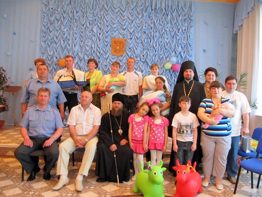 В 11:00 ч. Преосвященного Владыку уже ждали в районном ЗАГСе, где в этот день состоялась торжественная церемония – имя наречение. Молодым родителям вручали свидетельства о рождении детей. Всего в этот день было вручено 5 свидетельств о рождении. На мероприятии присутствовали: глава Купинского района В. Н. Шубников, депутат Законодательного Собрания Новосибирской области М.С. Вересовой. председатель Совета депутатов Купинского района Н.В. Сорокина. Каждой семье в честь праздника был вручен памятный подарок.