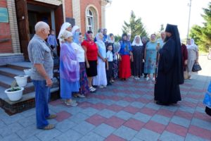 Встреча состоялась как раз в день Святого Духа в храме во имя великомученика и целителя Пантелеимона, что в санатории «Краснозерский». Любознательных кадетов встречал настоятель иерей Алексей Юрьевич Лебедев.