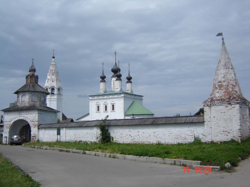 Следующий Александровский мужской монастырь основан Александром Невским в 1240 году, расположен на огромной территории. Проходим в следующие монастыри. Ноги уже не идут… За рекой Спасо-Евфимиев монастырь, основанный в 1352 г. св. Евфимием, сподвижником Сергия Радонежского. А за ним полностью отреставрированный Свято-Покровский женский монастырь, основанный в 1364 году.