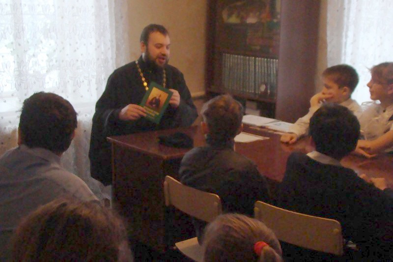 25 сентября/четверг. В воскресной школе при храме во имя святого апостола и евангелиста Луки г. Купино иеромонах Мелхиседек (Свистелин), благочинный Центрального округа Карасукской епархии, провел занятия с учащимися 4-го класса лицея № 2 г. Купино на тему: «Понятие о Священном Писании».