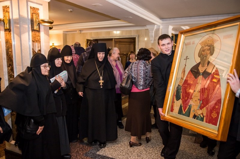 Профессор томских вузов, кандидат филологических наук Анастасия Николаевна Кошечко в докладе «Святой равноапостольный князь Владимир как духовный ориентир в ситуации цивилизационного выбора России» раскрыла значение личности святого князя в истории нашей страны. Для государств, возникших в последние полторы тысячи лет, развитие задавалось выбором религии. В 988 году на Руси произошла «встреча ветхого и нового человека — это колоссальный внутренний перелом, который мы ощущаем до настоящего момента», — сказала в своем выступлении Анастасия Николаевна.