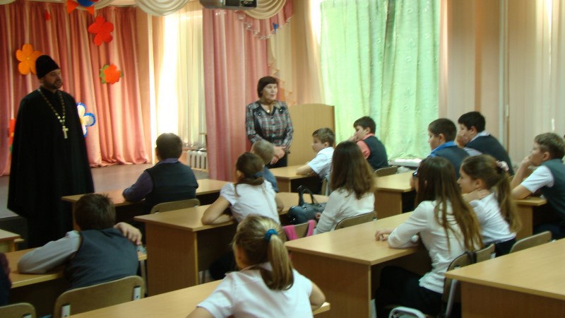 Иеромонах Мелхиседек рассказал учащимся о значении Православия в становлении русской государственности. По окончании занятия иеромонах Мелхиседек поздравил учащихся с наступающим праздником Рождества Христова и благословил их на дальнейшее успешное обучение.