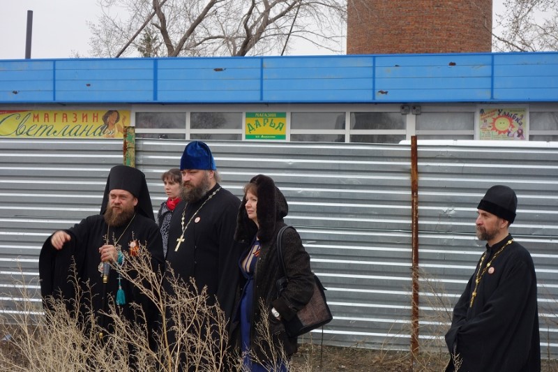 После обеда епископ Филипп, протоиерей Константин Работа, настоятель храма прп. Сергия Радонежского р. п. Краснозерского протоиерей Алексей Лебедев, представители Правительства Новосибирской области и участники поезда побывали на строительной площадке будущего храма во имя прп. Сергия Радонежского, где в настоящее время выкопан котлован и залита фундаментная плита.