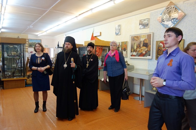 В 12.00 состоялось открытие выставки в художественном музее р. п. Краснозерского, куда были приглашены ветераны и школьники. Со словами приветствия к ним также обратился епископ Филипп, он рассказал о роли и деятельности Русской Православной Церкви в годы Великой Отечественной войны.