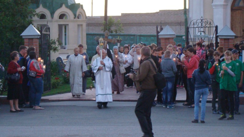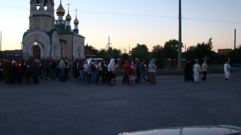 В четыре часа по местному времени был совершен крестный ход от храма во имя святого апостола и евангелиста Луки города Купино до мемориала Героям фронта и тыла.