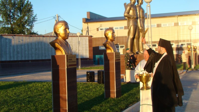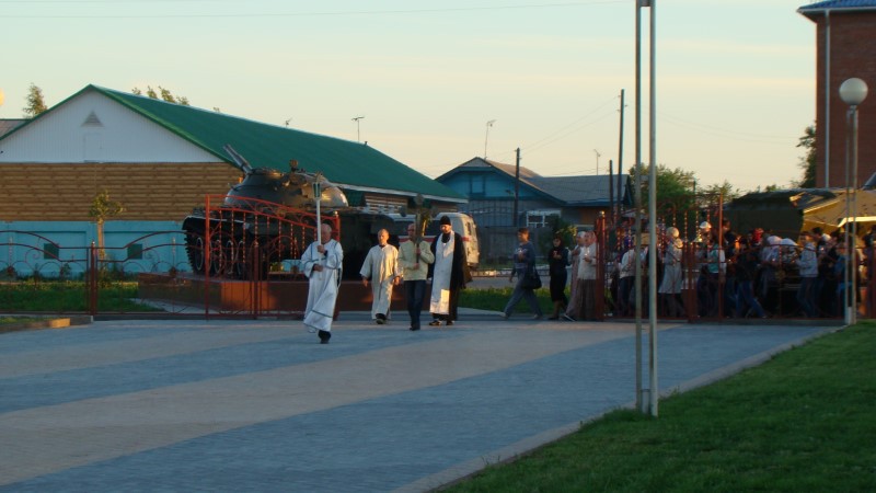 По окончании крестного хода у памятника Героям фронта и тыла иеромонах Мелхиседек (Свистелин), благочинный Центрального округа Карасукской епархии, совершил литию по почившим воинам и обратился со словом назидания к собравшимся.