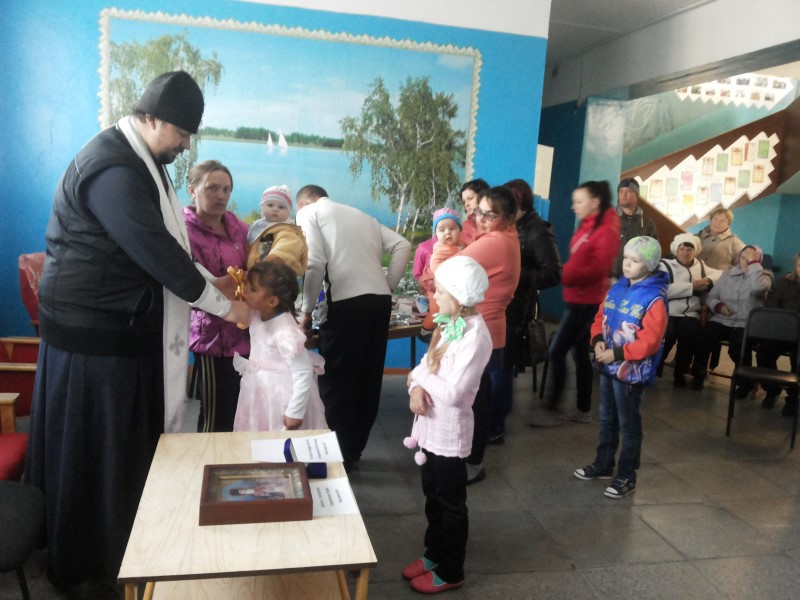 После огласительной беседы в Доме культуры 7 человек приняли Таинство Святого Крещения. Все крестившиеся получили подарки: молитвословы, календари и духовную литературу.