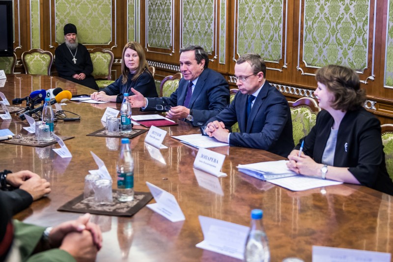 Встреча состоялась 2 ноября в зале приемов Правительства Новосибирской области и приурочена предстоящему празднованию Дня народного единства. Владимир Филиппович Городецкий приветствовал собравшихся и поблагодарил глав религиозных конфессий за сотрудничество по актуальным проблемам. «Необходимо обсудить, что можно улучшить и укрепить в диалоге конфессий и власти. Многие годы у нас в регионе сохраняются понимание и уважительные отношения между представителями различных национальностей, и наши предки многое сделали для того, чтобы не возникало междоусобиц на религиозной почве, чтобы представители разных конфессий ощущали себя единым народом. Нам есть чем гордиться и вы своей работой сохраняете нашу историю». В.Ф. Городецкий также представил нового первого заместителя Губернатора Юрия Фёдоровича Петухова, в его ведении будут находиться вопросы взаимодействия с общественными объединениями и проблемы гражданского общества.Митрополит Тихон поздравил Юрия Фёдоровича с назначением на высокую должность и поблагодарил за сотрудничество. Он рассказал о том, что в марте 2015 года создан совет глав традиционных религий. 10 марта 2015 года было подписано первое обращение совета к жителям Новосибирской области. Второе заседание совета состоялось 29 октября, на котором было принято заявление о поддержке закона о запрете признания священных книг экстремистскими.