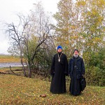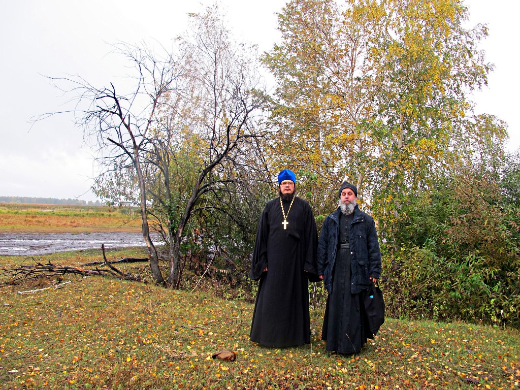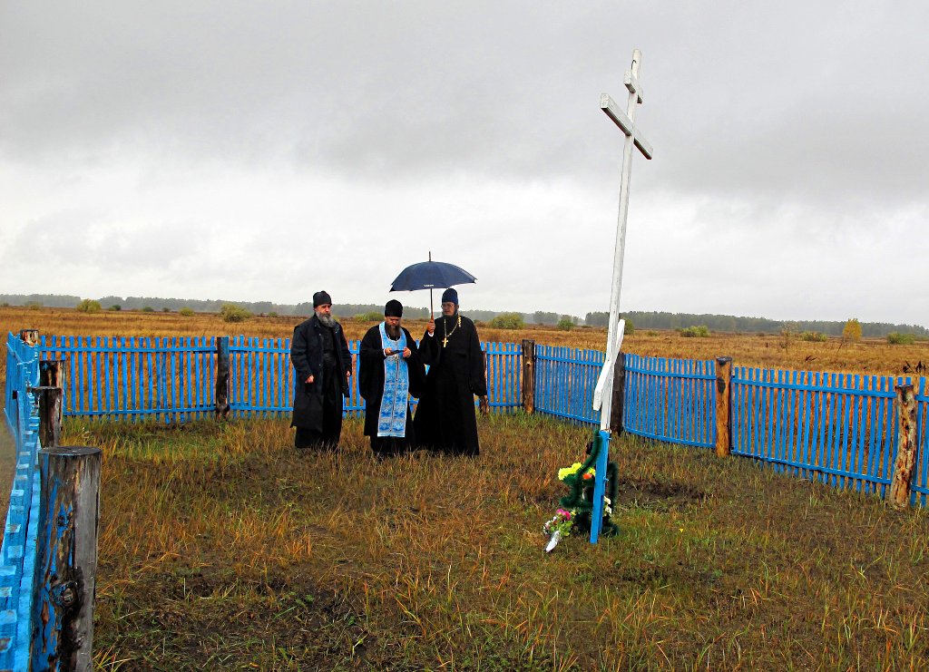 Затем Владыка с о. Андреем Гусевым прибыли в с. Волчанка Доволенского района на место убиения священнослужителей, пострадавших в годы репрессий, где была отслужина лития.