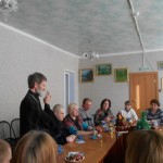 Батюшка поздравил участников встречи с праздниками и освятил в Доме культуры заранее приготовленную воду.