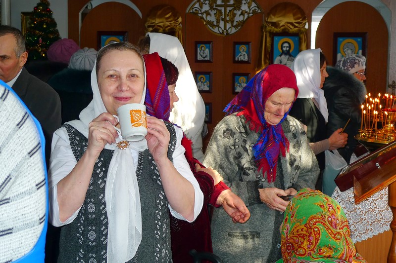 Наш батюшка весь день освящал воду, а народ ее брал и брал — сколько хочется.