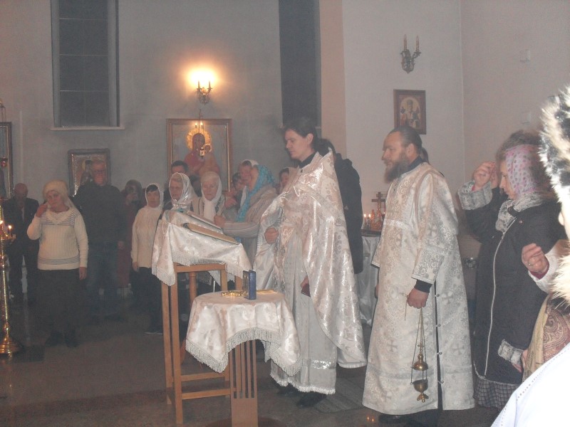 По окончании Божественной литургии был совершен Великий чин освящения воды, в конце которого батюшка покропил всех святой водой и поздравил с праздником.