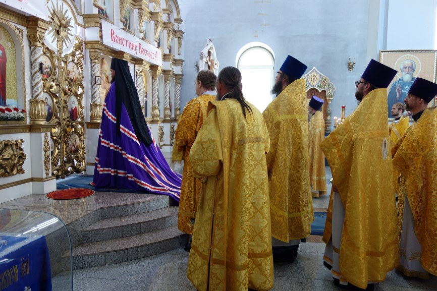 24 мая/вторник. В день памяти свв. равноапп. Мефодия и Кирилла, учителей Словенских, Его Преосвященство епископ Филипп возглавил Божественную литургию в соборе в честь Живоначальной Троицы р. п. Ордынского.