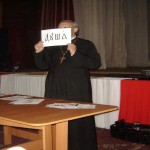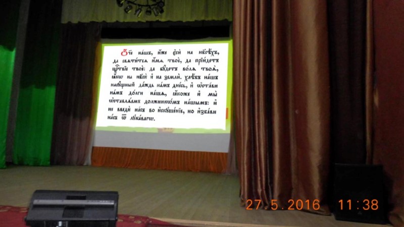 После этого совместными усилиями прочитали молитву «Отче наш», написанную славянскими буквами, и посмотрели мультфильм о славянских учителях