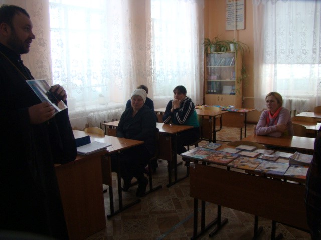 На собраниях иеромонах Мелхиседек рассказал о предмете «Основы православной культуры» и ответил на вопросы родителей обучающихся и учителей.